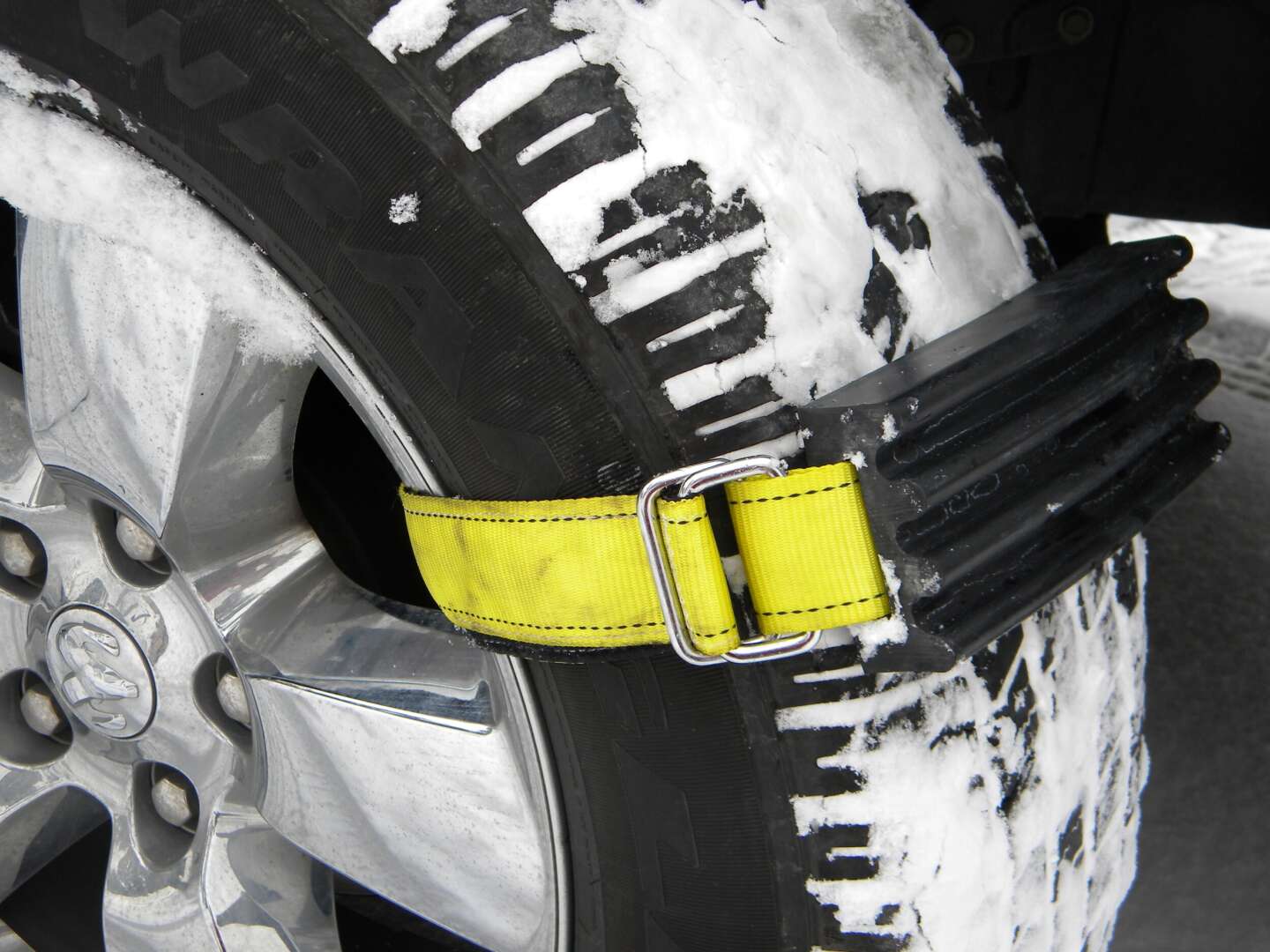 Eftersom broddarna är monterade på fordonets hjul får man hjälp hela vägen till säker mark. När du är åter på fast mark är det bara att ta loss broddarna. Broddarna passar även extra breda däck tack vare den extra långa säkerhetsremmen som används.